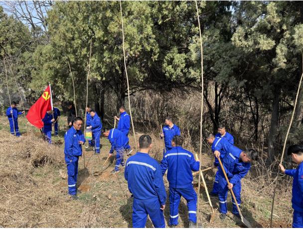 臨近3.12植樹(shù)節(jié),為響應(yīng)中材礦山“黨旗紅,礦山綠”的主題植樹(shù)活動(dòng),本次團(tuán)建活動(dòng)特意加入了植樹(shù)環(huán)節(jié)。大家有的鏟土挖坑、有的培土植樹(shù),有的澆水灌溉,個(gè)個(gè)爭(zhēng)先恐后,干得熱火朝天。